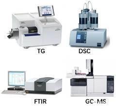8、 表征方式:热重分析仪-热分析-傅立叶转换红外线光谱仪(TGA-DSC-FTIR),气相色谱-质谱联用仪(GC-MS)
